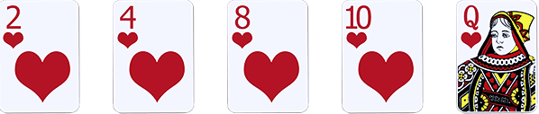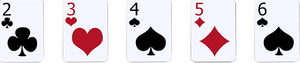 Contoh Straight Flush: A, 2, 3, 4, 5 (berurutan dengan suit yang sama)